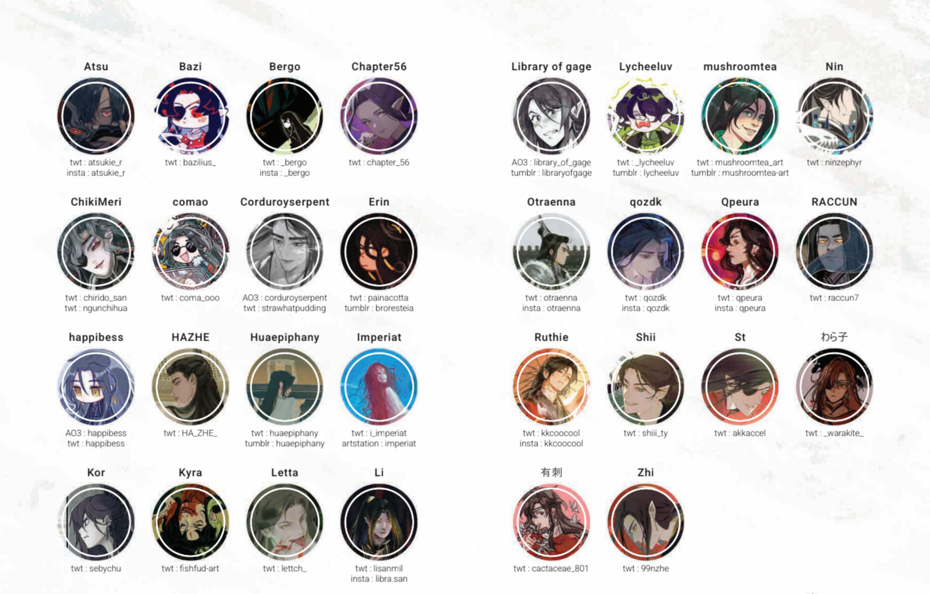 This zine will be a two-toned disaster with an equal number of pieces focussed on each of the four Calamities from TGCF (Heaven Official's Blessings). Artists and writers will converge to create both light-hearted and angsty content about Heaven's greatest headaches—Hua Cheng, He Xuan, Qi Rong, and Jun Wu.